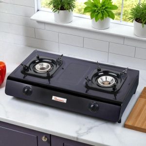 MIKA Gas Stove, Glass Top, Double Burner, Black