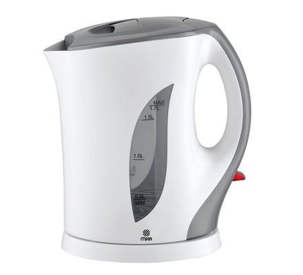 MIKA Kettle, 1.7L, Plastic, Cordless, Open Element, White & Grey