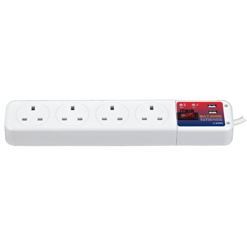 MIKA Multi Guard, 4 Way, with USB & Switch, Extension Plug 13 Amps