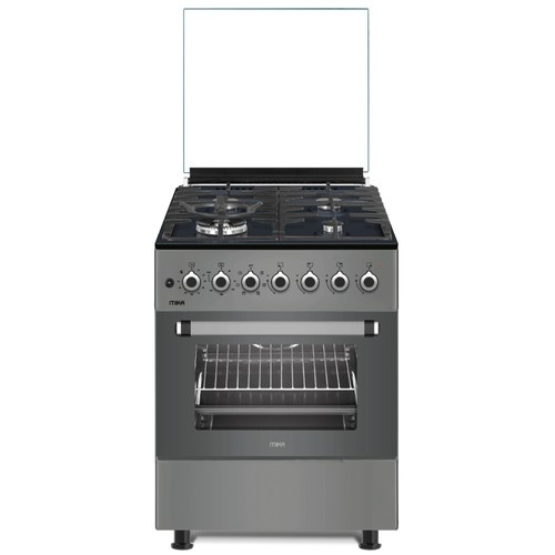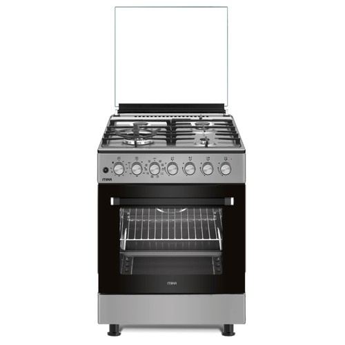 MIKA Standing Cooker, 60cm x 60cm, 4 Gas Pool Burners (1 Wok), Flame Failure Safety, Button Ignition, 10-Function Electric Oven (Air Fry + Convection Fan), Rotisserie, Half Inox