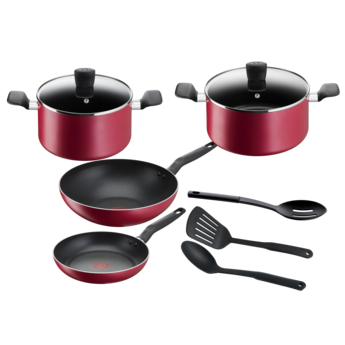 Tefal Super Cook 9 pc Cookware Set (Red) B460S984